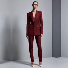 Related Product for Blazer and Wine Red Jacket+Pants Women's Business Suits Office Uniform Designs Women Elegant Formal Ladies Trouser Suit 2 Piece Sets Custom2018 Pure Color Simple Boyfriend Jacket Small Pants Slim Cuff Pant Office Lady Suit Femme Karxige High End Jacket Suit Lady