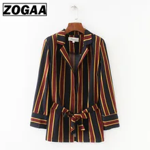 .Gallery for Autumn 2019 Vertical Striped Belt Jacket Women's Suit Jacket Spring Clothes Women Casual Notched Fashion Ladies Tops ZOGAA