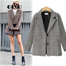 Price Description of GIYU Spring Autumn Women Plaid Printing Blazer Long Sleeve Jackets Pockets Sexy Tops Casual Single Breasted camiseta mujer