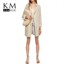 Cheap Offer of Kissmilk Plus Size Large size lovely elegant girlish cream-colored casual country style simple loose lapel long blazer